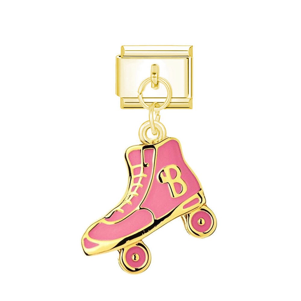 - Design: Detailreicher Rollschuh mit pinker Emaille und "B"-Initial