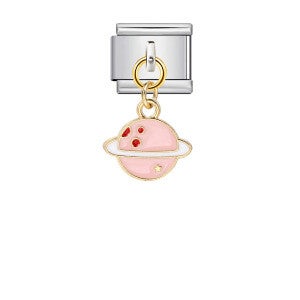 Greif nach den Sternen mit unserem Charm Planet. Dieser elegante Anhänger in zartem Rosa (Saturn-Stil) kombiniert kühlen Edelstahl mit edlen Gold-Akzenten. Kleine Details wie rote Punkte und ein winziger Stern machen dieses Element zu einem galaktischen Highlight an deinem Handgelenk. Durch das einfache Klick-System lässt sich der Charm in Sekundenschnelle in dein Armband integrieren.